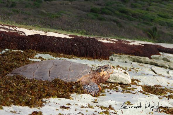 Sur les 7 espèces de tortues marines existantes, 5 fréquentent l'océan Atlantique et 3 viennent pondre sur les plages de l'archipel guadeloupéen.